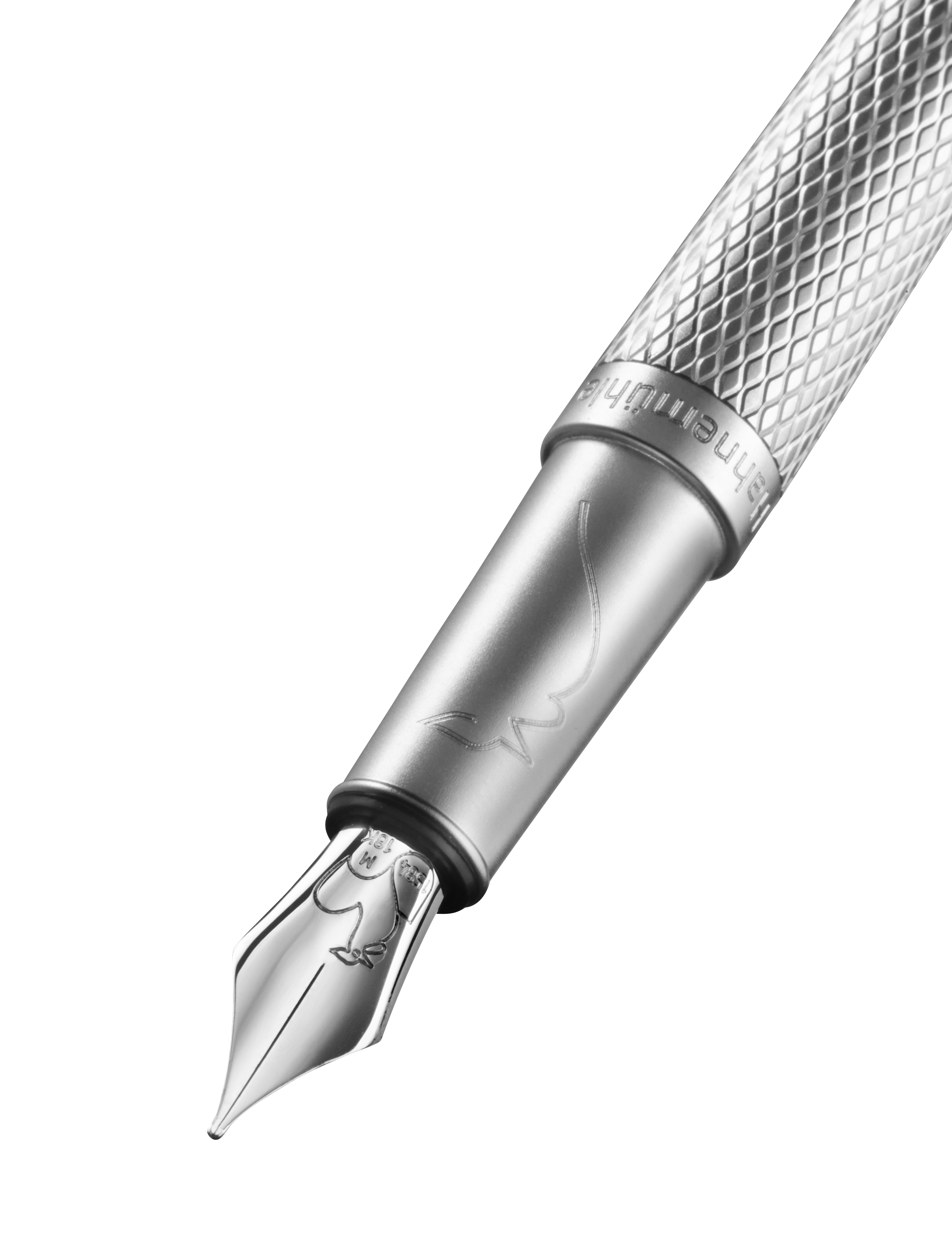 - Fountain pen with 18 kt. gold nib, rhodium-plated, stroke width F, M or B