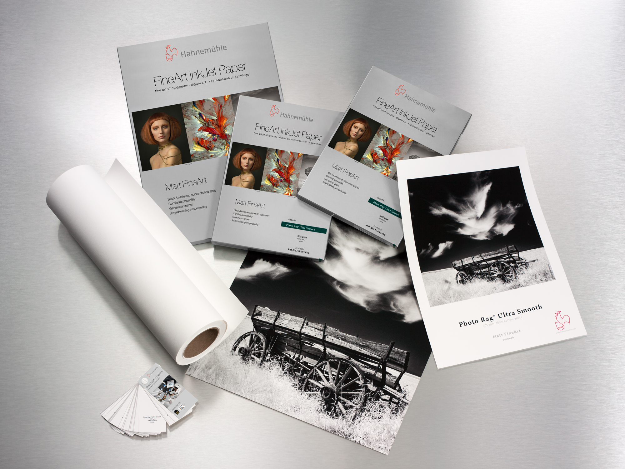 Hahnemühle Photo Rag® Ultra Smooth is another addition the Photo Rag® family, boasting an especially smooth surface for high quality Fine Art inkjet printing. The white cotton art paper has a discreet, very fine textured surface and soft feel. The premium matt inkjet coating guarantees extraordinary prints, with deep blacks and reproduction of colour. The photo Rag® Ultra smooth is a versatile paper suitable for fine art photography and reproductions. The paper is lignum and acid-free, making it extremely age resistant.