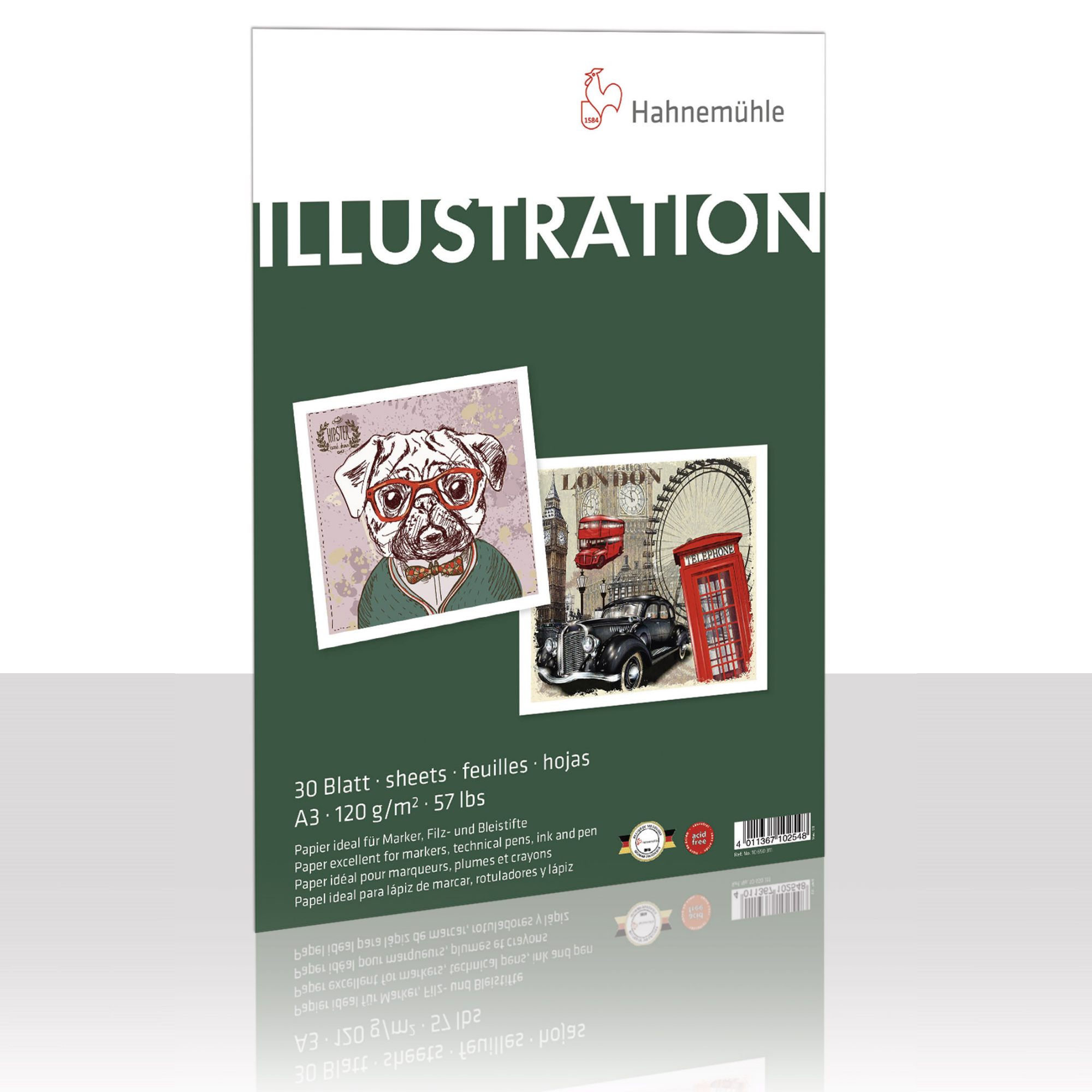 Illustration 120 g/m² is available in sheets with 30 sheets per pack in A4 and A3 formats. Acid-free and age-resistant.
