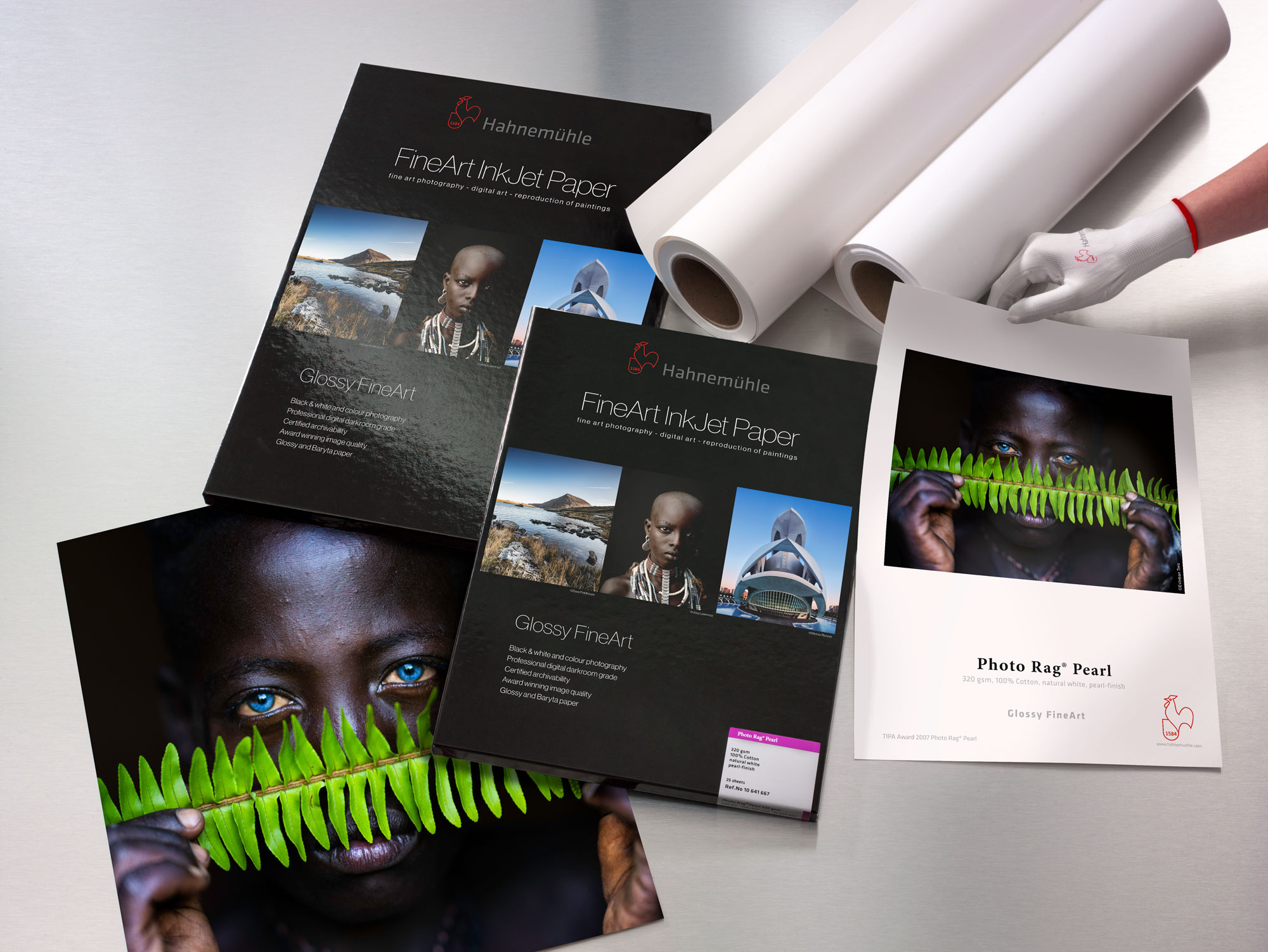 Photo Rag® Pearl de Hahnemühle est un papier en coton pur avec un couchage jet d’encre optimisé pour les besoins des applications FineArt. Ce papier FineArt blanc naturel est sans azurant optique et se distingue par son degré de blancheur aux tons chauds. Sa surface homogène et légèrement prononcée confère au papier une texture souple et agréable au toucher et un bel effet de profondeur à l’impression. Le couchage jet d’encre brillant perlé de qualité supérieure crée des impressions FineArt exceptionnelles avec un rendu des couleurs et des détails impressionnants, un noir profond et les meilleurs contrastes. Sans acide et sans lignine, le papier jet d’encre Photo Rag® Pearl répond aux exigences les plus élevées en matière de conservation.