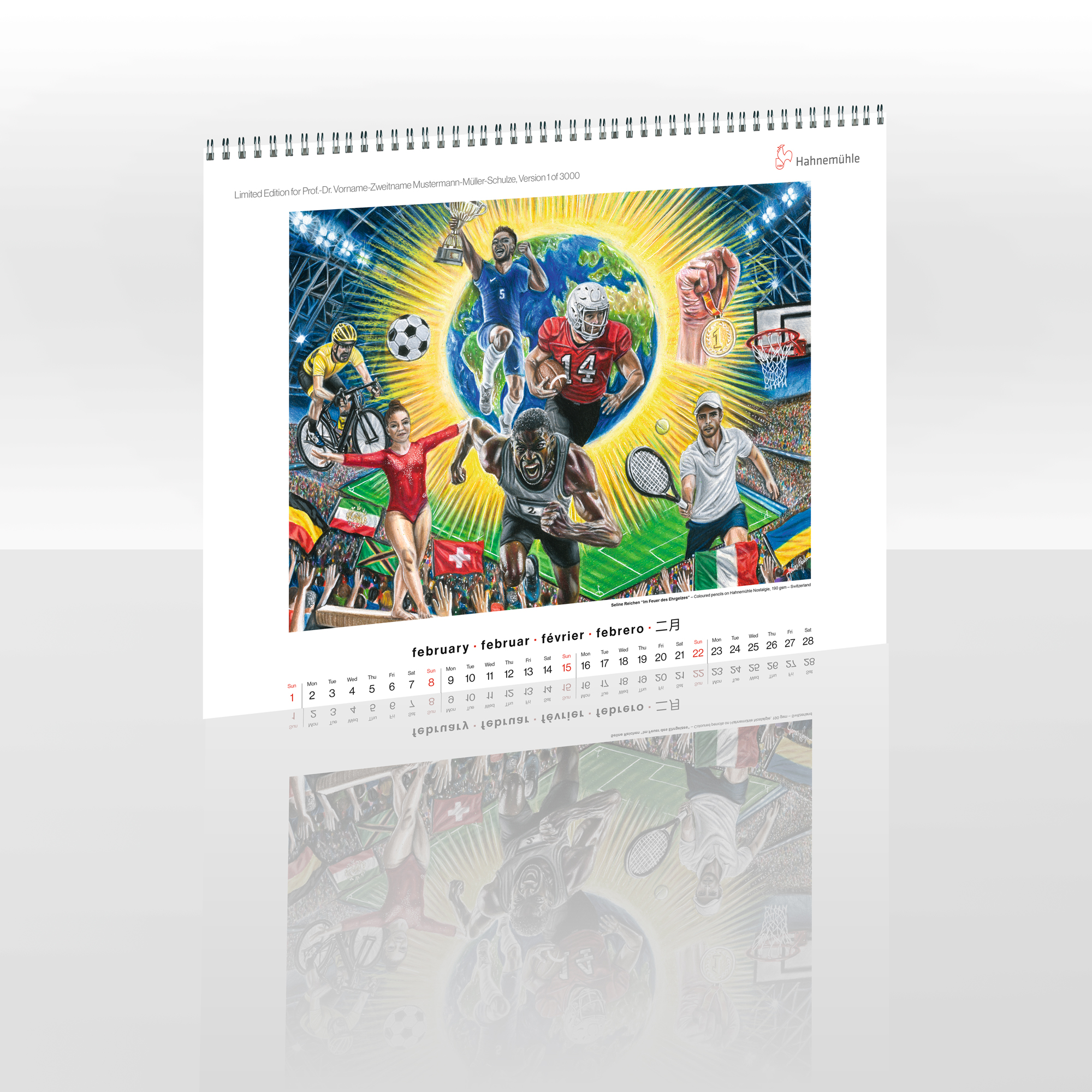 Dieser Kalender feiert die Kraft des Sports - Leidenschaft, Emotionen und den verbindenden Geist über alle Grenzen hinweg. Von ikonischen Stadien bis zu internationalen Events zeigt er die Vielfalt, den Siegeswillen und die kulturelle Bedeutung großer Sportmomente. Lass dich Monat für Monat von einem Feuerwerk aus Emotionen und Leidenschaft begeistern! Erlebe die lebendigen, kraftvollen dreizehn Werke internationaler Künstler. Dieser Kalender ist ein visueller Genuss, eine tägliche Quelle der Inspiration – perfekt für alle, die Kunst lieben!